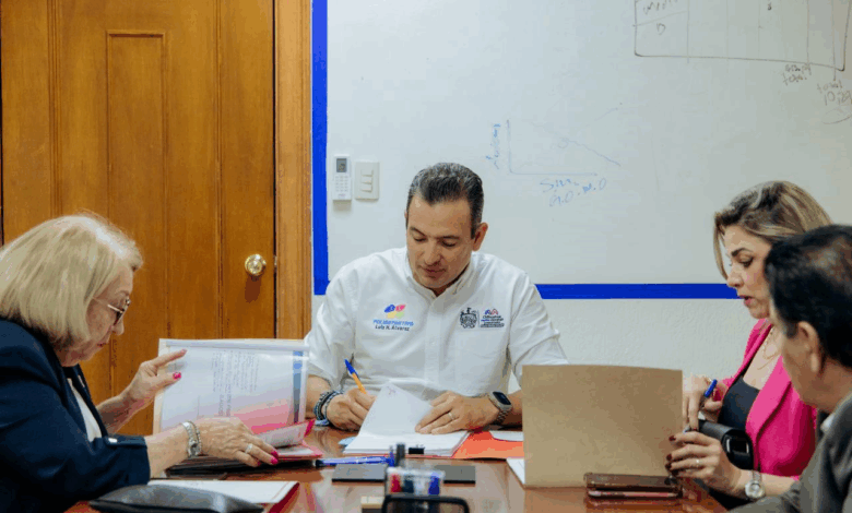 Durante la firma del contrato también participaron, el secretario del Ayuntamiento, Roberto Fuentes y el regidor que preside la Comisión de Hacienda, Luis Abraham Villegas, así como el subdirector de Egresos, Arturo Amparán.